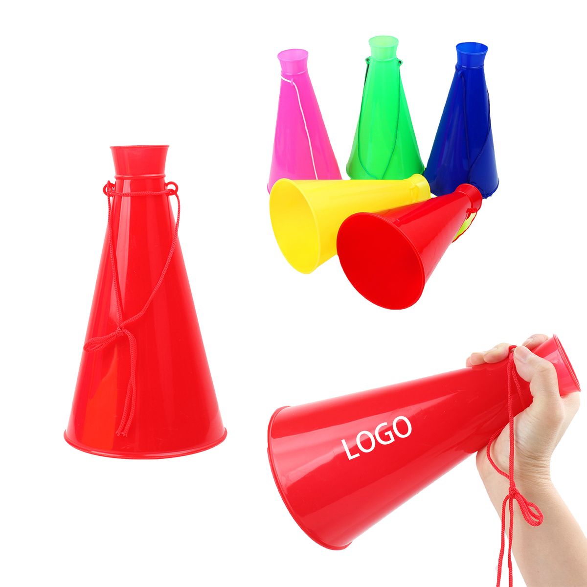 his plastic megaphone is the ultimate choice for energizing sports events and promotional activities. Crafted from durable, lightweight plastic with a smooth finish, it's easy to carry by hand or with its included lanyard. The horn-shaped design effectively amplifies your voice, ensuring cheers and announcements are heard loud and clear. Available in multiple vibrant colors, it creates a strong visual impact. Measuring 9.06x4.92 inches, it's perfect for boosting brand visibility and creating an exciting atmosphere at any gathering. Contact us for a free quote!