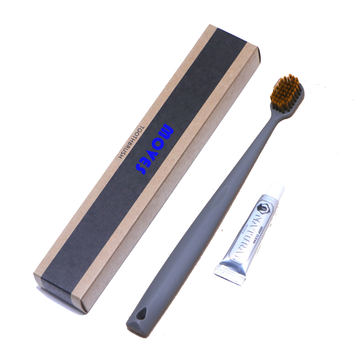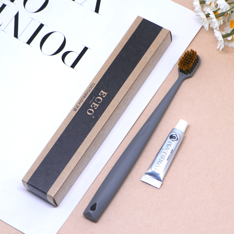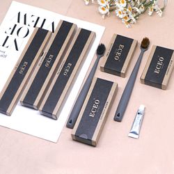 The set includes a 300g laminated kraft paper card box, a widened soft toothbrush, and a 5g small toothpaste. Perfect for hotels, homestays, travel, camping, etc.
