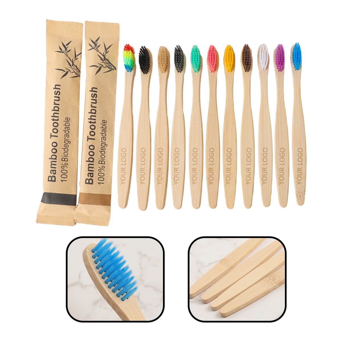 Crafted for the eco-conscious individual, our toothbrush combines a sturdy, sustainably sourced bamboo handle with gentle, tapered bristles for effective cleaning. Measuring 6.89"x0.55"x0.20", it's perfectly sized for comfort and portability. Each brush comes in its own biodegradable wrapper, ensuring hygiene for home use or travel. The soft bristles gently reach between teeth, suitable for daily care or sensitive gums. The smoothly sanded handle offers a comfortable, natural grip in various color options. An ideal promotional gift, it can be personalized with a laser-etched logo on the handle or a single-color print on its paper pouch??customization fees are included. Request your free quote today!