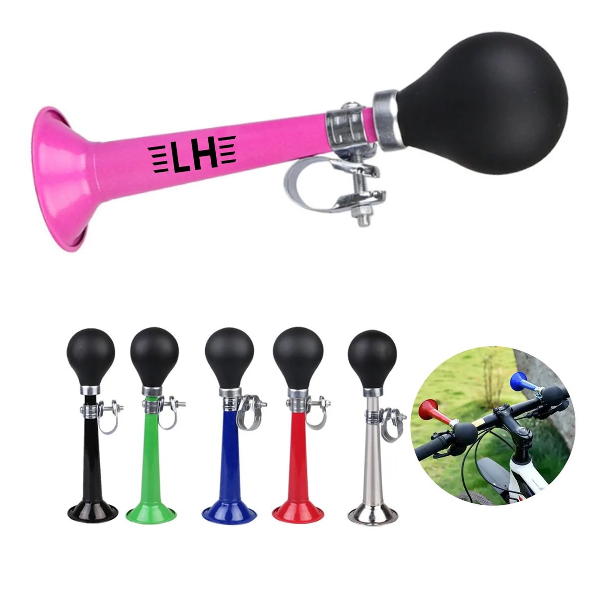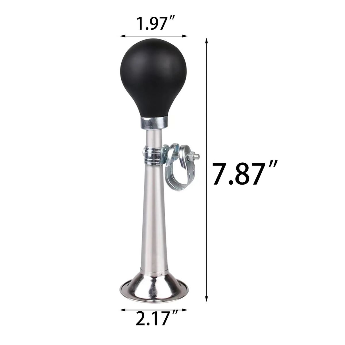 Additional InformationMade of aluminum alloy and rubber material. Squeezing the rubber ball on the horn and it will make a loud and recognizable sound.