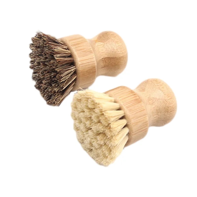 Measuring 3"*1.8" and weighing 0.14b, this dish brush is designed to handle heavy-duty cleaning with tough and resilient bristles that easily reach nooks and crannies and work effectively on a variety of surfaces. At the same time, they can be used safely in boiling water. These palm pot brushes are perfect for cleaning cast iron skillets, steel pans, pans, utensils, sinks, vegetables, tiles, carpets, upholstery and more. The handle of the brush is made of natural bamboo, with a rounded surface and a good texture that protects your hands from scratches, provides an ultra-comfortable grip, and fits into your palm. Suitable for kitchen, bathroom, laundry and garage. Prices for quantities over 7200pc are based on sea freight.