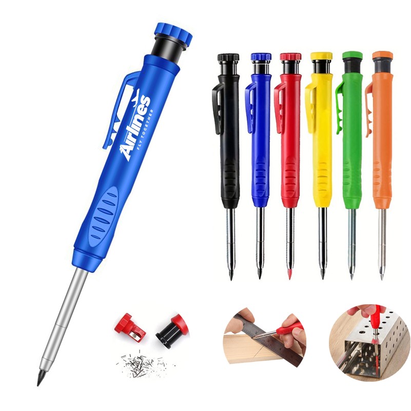 Enhance woodworking and DIY projects with our precision carpentry marking tool. Crafted with a sturdy metal and plastic body, this tool is perfect for accurate line drawing and precise cutting. The extended fine tip allows for detailed lines in tight spaces, making it versatile for construction, woodworking, crafting, and DIY projects. Our marker includes an integrated sharpener for a consistently sharp point on wood, metal, plastic, glass, and more. A must-have item for professionals and hobbyists, this durable tool provides clear and lasting marks. Ideal for businesses in construction, manufacturing, or education looking for a practical and frequently used promotional item. Elevate your projects with our high-quality carpentry marking tool today.No pen lead included.