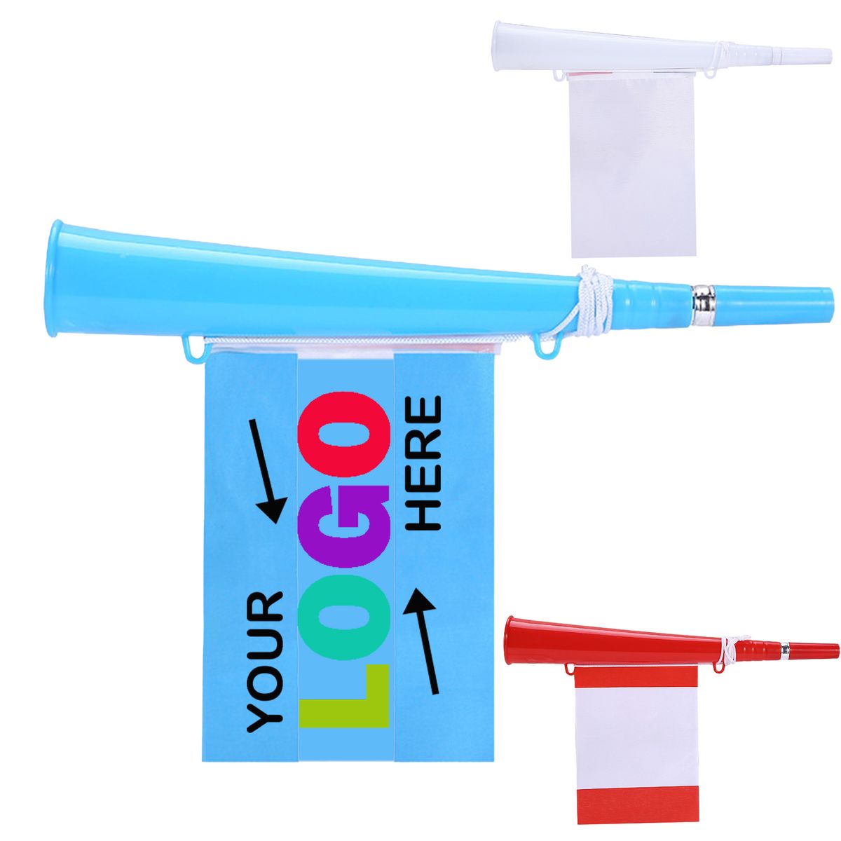Additional InformationCheer louder at football games with this combo of a cheering flag and horn. Orders of 500 pieces or greater are eligible for sea shipping.