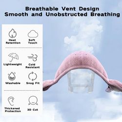 This warm winter mask is crafted from high-quality cotton with a soft fleece lining, offering superior insulation and a gentle touch on the skin. Windproof ear covers made of premium rabbit fur provide extra warmth and protection against cold winds. The thermal fabric features micro-perforations for breathability without compromising heat retention. Ideal for skiing, cycling, or jogging, this mask ensures full facial coverage and comfort in cold-weather conditions. Logo customization available. 100% quality guaranteed.